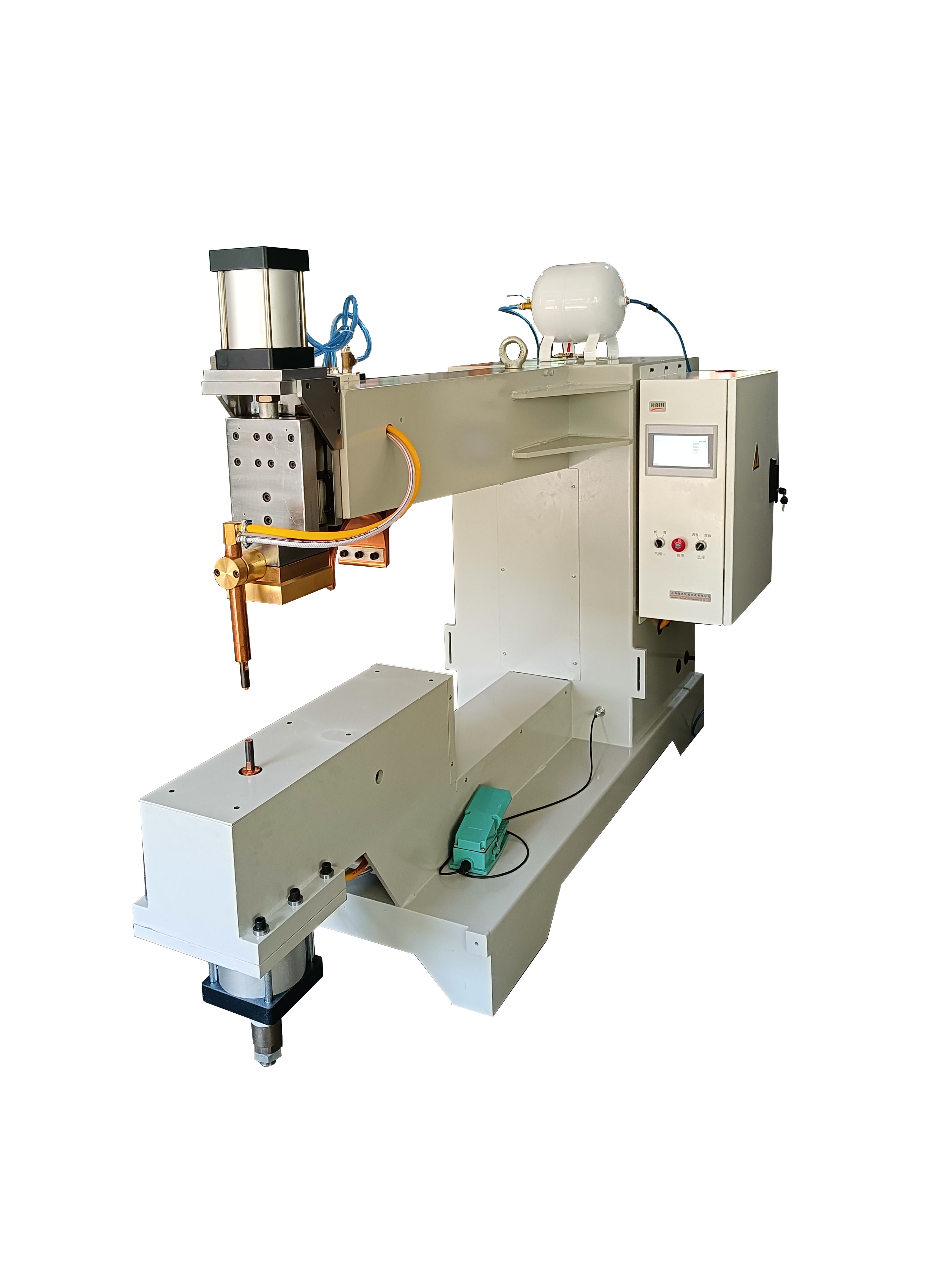縫焊機就是指焊件裝配成搭接或對接接頭并放置于兩滾輪電極中間,滾輪電極加壓焊件并旋轉,連續或斷續脈沖送電,形成一條連續焊縫的電阻焊機器。可以說,縫焊機是點焊中的一種演變。